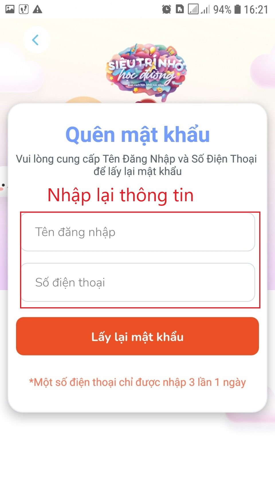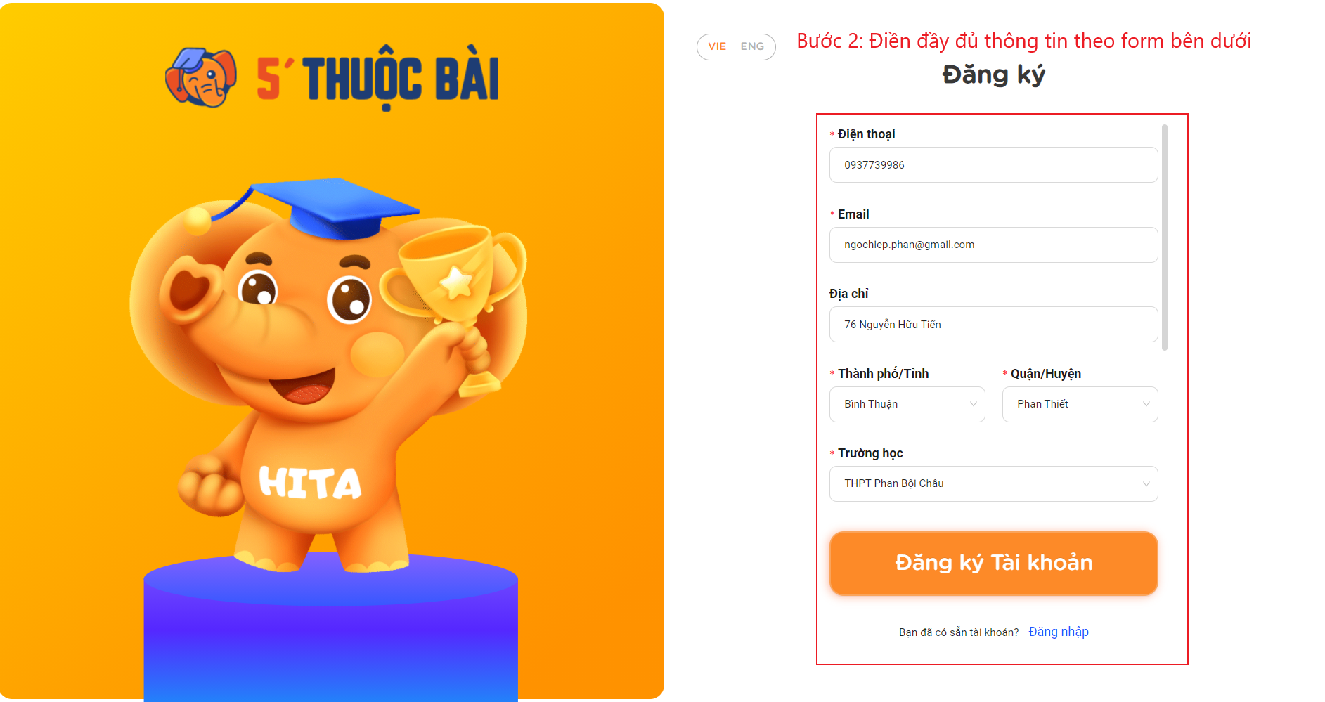 Bước 2: Nhập đầy đủ thông tin theo hướng dẫn